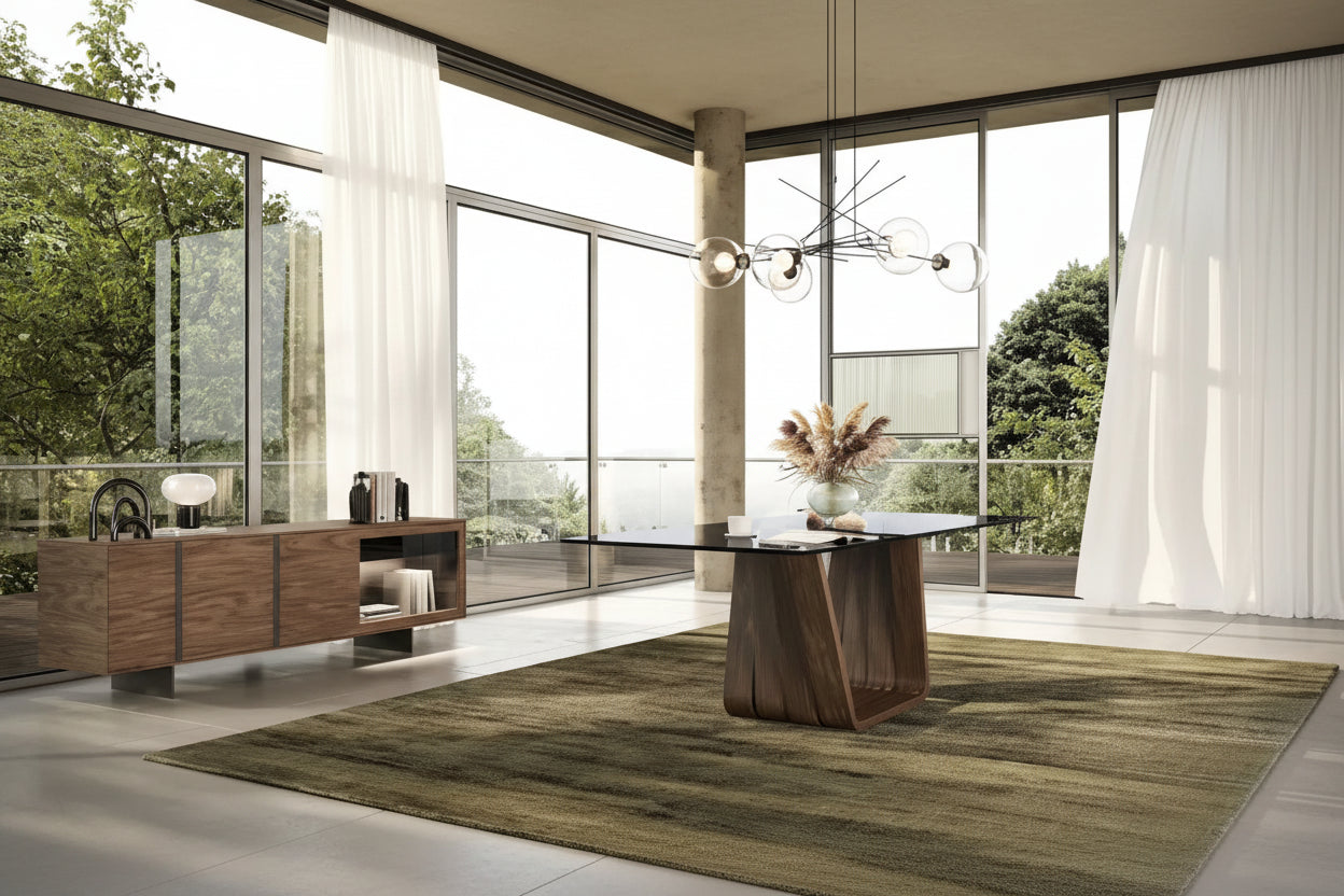 Pannelli selezionati in noce di alta qualità con venature naturali, calde e pregiate, trama delicata, che si abbinano perfettamente a stili di arredamento moderno, nordico, industriale, wabi-sabi e altri, valorizzando lo stile del soggiorno.